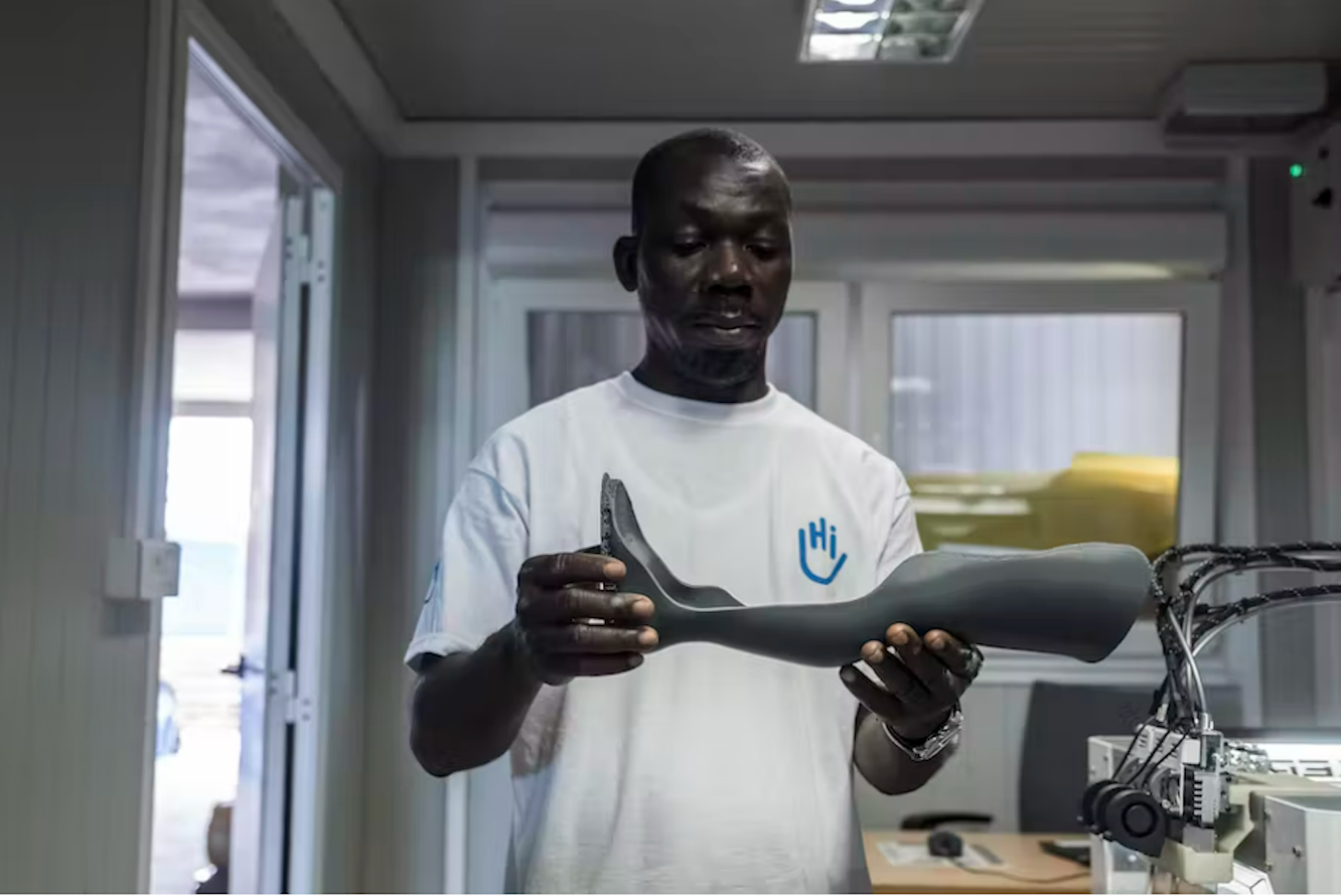 Biologie - santé Article INSA Lyon|The Conversation DDans les pays en zone de conflits, des appareillages orthopédiques imprimés en 3D à partir de matériaux recyclés Impression 3D d’orthèse à Lomé au Togo. Crédit : X. Olleros, Handicap International. Dans les pays à faibles revenus ou en contexte de conflit, seulement 5 à 15 % des personnes ayant besoin d’un appareillage orthopédique y ont accès. En effet, les infrastructures et personnels de santé sont présents en ville et donc difficiles d’accès aux personnes vivant dans des zones rurales ou isolées. De plus, les délais et coûts de fabrication de la conception traditionnelle d’appareillages orthopédiques sont élevés et peu accessibles à tous.Pour répondre aux problématiques présentes sur le terrain d’intervention, l’ONG Handicap International et le réseau d’écoles d’ingénieur INSA s’unissent depuis 2021, dans le cadre de la Chaire de Recherche « Innovation for Humanity ». L’objectif est de développer des solutions techniques adaptées aux situations dans les pays d’intervention, grâce aux connaissances de l’ONG dans le domaine de l’humanitaire et l’expertise scientifique du Groupe INSA et de ses laboratoires.Grâce à l’Alliance « Innovation for Humanity », j’ai pu débuter ma thèse de doctorat en octobre 2021 sur l’impression 3D d’appareillages orthopédiques. L’objectif principal de ma thèse est d’utiliser des matériaux recyclés et locaux pour limiter le coût des appareillages orthopédiques et leur impact environnemental.LL’impression 3D a un réel potentielTraditionnellement, les appareillages orthopédiques sont réalisés par thermoformage ou stratification par un orthoprothésiste qualifié. Il s’agit d’un procédé long et coûteux qui nécessite de réaliser d’abord un moule en plâtre du membre du patient. Le moule négatif est alors rempli de plâtre et transformé en un moule positif, qui reproduit la forme de la jambe du patient. Ce moule positif est ensuite rectifié pour corriger la posture du patient.L’appareillage est fabriqué à partir de résine ou il est thermoformé à l’aide d’une plaque de polyéthylène ou polypropylène qui est chauffée pour prendre la forme du moule. Le patient devra alors se rendre plusieurs fois au centre orthopédique pour la réalisation du moule initial puis des ajustements, auxquels il faut ajouter un temps de rééducation. Au final, plusieurs semaines sont requises pour appareiller un patient, avec une prothèse (dispositif de remplacement) ou une orthèse (dispositif de correction).Conception traditionnelle d’appareillage orthopédique. Crédit : C. Fohlen, Handicap International.Depuis 2017, Handicap International utilise la fabrication additive, communément appelée impression 3D, pour réaliser des orthèses. Les pièces sont créées, couche par couche, à partir d’un filament en plastique fondu. Il est alors possible de concevoir des orthèses plus rapidement et à des prix plus accessibles. Pour cela, le scan 3D du membre du patient est réalisé à l’aide d’un scanner portatif. Puis, l’appareillage est conçu sur un logiciel de conception et imprimé en 10 à 20 heures. L’impression 3D permet d’aller au plus proche des personnes dans le besoin car le scan 3D du patient peut être pris à distance et envoyé au centre d’impression 3D, qui est encore centralisé. À terme, l’imprimante pourrait être emmenée sur place avec un simple véhicule. Finalement, les études d’Handicap International menées au Togo, Mali et Niger montrent que cette nouvelle technologie est très bien acceptée par les bénéficiaires et les personnels soignants.Orthèse fabriquée par impression 3D au Togo. Crédit : Author provided, Handicap International.Cependant, les filaments d’impression 3D utilisés viennent d’Europe et sont fabriqués à partir de matières vierges, ce qui alourdit les coûts financiers et environnementaux et entraîne des problèmes de logistique. Ainsi, Handicap International souhaite fabriquer son filament d’impression 3D directement dans les pays d’intervention, avec des matériaux locaux et recyclés.PPour diminuer les coûts, l’intérêt du recyclageNous nous sommes alors intéressés au recyclage des déchets plastiques, qui sont présents partout dans le monde. Dans les pays en voie de développement, les déchets sont un réel problème pour les populations et les écosystèmes car ils finissent dans la nature à cause d’une gestion limitée. Cependant, les plastiques recyclés peuvent désormais être utilisés en impression 3D. Pour cela, les déchets plastiques seraient collectés, triés, nettoyés, broyés, séchés, extrudés (fondus) en filaments qui pourraient ensuite être imprimés en 3D. Les coûts de fabrication et l’impact écologique liés à la fabrication du filament d’impression 3D seraient alors réduits et il serait ainsi possible de lutter contre la pollution plastique.Les défis sont donc nombreux. Nous devons d’abord trouver des matériaux qui soient à la fois disponibles, recyclables et imprimables, tout en respectant un cahier des charges complexe en termes de résistance mécanique et de fiabilité, afin de répondre aux besoins des orthoprothésistes. Ensuite, nous devons pouvoir créer un filament recyclé de qualité. Le challenge est de taille car les matières recyclées présentent souvent des impuretés (charges métalliques ou minérales, mais aussi d’autres polymères) alors qu’il est primordial de garder un filament de diamètre constant tout au long de l’impression.Trois matériaux ont été retenus au début de cette étude :le Polyéthylène Téréphtalate (PET), que l’on retrouve dans les bouteilles plastiques dont les gisements de déchets sont très nombreux, notamment dans les pays en développement où l’accès à l’eau potable est limité. Ce matériau a l’avantage d’être rec